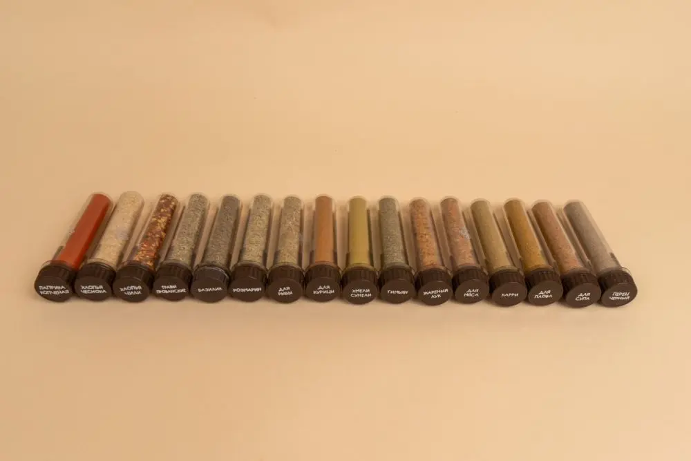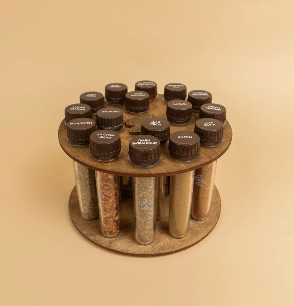 В наборе «ARG SPICES», мы собрали самые популярные и натуральные специи и приправы из разных уголков мира для Вашей кухни: Россия Индия Иран Испания Польша, Китай, Египет Марокко и тд., благодаря чему мы добились идеальной гармонии качества и вкуса. Без примесей, усилителей вкуса, ГМО и красителей! Все ингредиенты проходят двойную очистку перед помолом: от шелухи и пыли, в результате мы получаем высококачественный продукт без каких либо примесей. Благодаря удобной деревянной подставки набор занимает мало места и идеально впишется в интерьер любой кухни а надписи на крышечках колбочек с названиями специй, упростят процесс приготовления. Состав пряностей: Паприка копченая, Перец черный, Хлопья чеснока, Для супа Для мяса Прованские травы Хлопья чили Розмарин, кари, для курицы для рыбы хмели сунели тимьян, базилик, жареный лук, для плова. С этим набором можно готовить различные блюда, начиная от шашлыка и заканчивая пиццей и супом. Специи подходят для бульонов и супов, лапши, заправки для харчо для курицы и мяса.