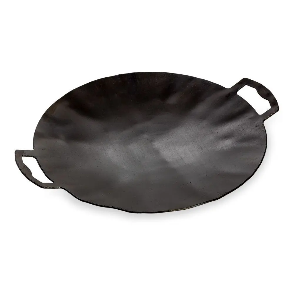 Садж из воронёной* листовой стали с цельновырезными ручками, диаметр 40 см, толщина стали 2мм.