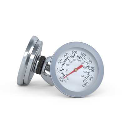 Корпус термометра выполнен из нержавеющей стали и защищён жаропрочным стеклом.