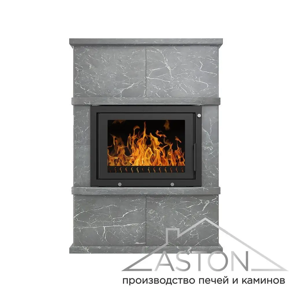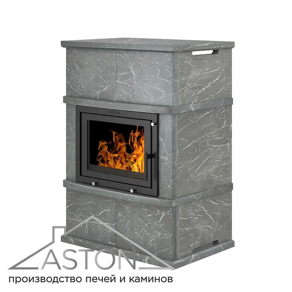 Облицовка для каминной топки АСТОН 600 сделана из натурального талькохлорита. Талькохлорит быстро прогревается, хорошо держит тепло и обладает свойством медленно и равномерно отдавать энергию в окружающее пространство. Облицовка из этого камня долго остаётся тёплой даже после окончания работы каминной топки. Вес облицовки 280 килограммов. Толщина плиты 4 см.