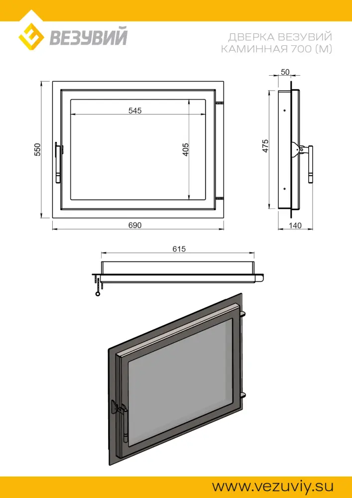 —Дверка ВЕЗУВИЙ каминная 700 (М) Антрацит