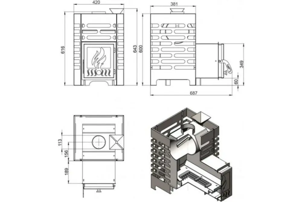 русская баня; закрытая каменка