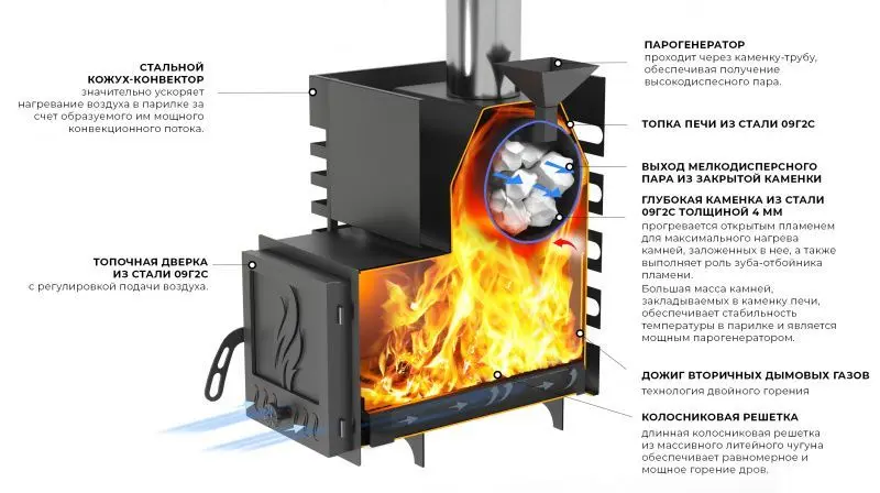 3.ЗАКРЫТАЯ КАМЕНКА ПЕЧЕЙ АСТОН позволяет получать мягкий пар, характерный для русской бани.
