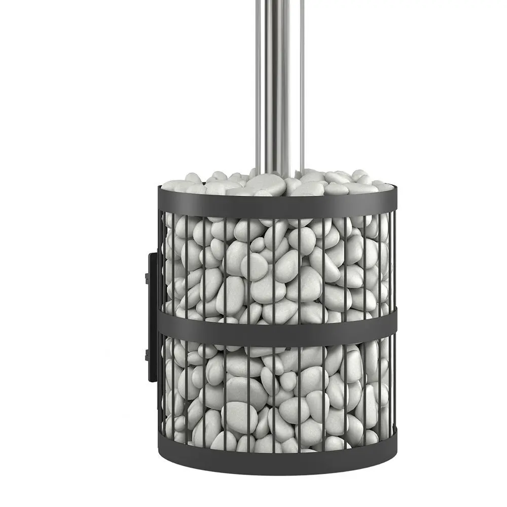 Для устройства наружной открытой каменки печь ЭТНА 18 оснащается сеткой. Пространство между печью и сеткой из двухмиллиметровой стали заполняется камнями для бани, которые выполняют роль теплонакопителя, перераспределяют тепло от стенок топки и защищают парящихся от жёсткого инфракрасного излучения. Воду подают на нагретые камни, с которых полученный пар распространяется по всему объёму парной. Сетка диаметром 620 миллиметров вмещает в себя до 150 килограммов камней крупной и средней фракции.