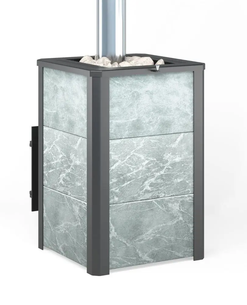Преимущество печи в том, что топка печи состоит из 3-х ЧУГУННЫХ элементов. На стыке между ними используется керамический шнур с рабочей температурой 1200 градусов. То есть топка печи абсолютно герметична! Для фиксации деталей между собой применяется болтовое соединение, что даёт 100% гарантию безопасности при эксплуатации. Конвекционно–вентилируемая облицовка, изготовленная из экологически чистой горной породы , который обладает большой теплоёмкостью, что позволяет камню в короткие сроки нагреваться и максимально долго удерживать стабильную температуру в парильном помещении, а также гасить жёсткое инфракрасное излучение