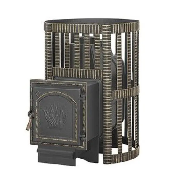 Банная чугунная печь Легенда Ковка 28 (271) укомплектована чугунной герметичной дверцей Везувий 271. Конвекционно-вентилируемый кожух "Ковка" изготовлен из металлической текстурированной полосы покрашенной термостойкой краской и покрытая патиной «Бронза».