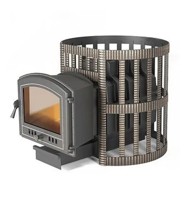 Банная чугунная печь Легенда Ретро 24 Ковка (224) укомплектована чугунной герметичной дверцей Везувий 224 с жаропрочным стеклом «SCHOTT ROBAX» и системой очистки стекла. Конвекционно-вентилируемый кожух "Ковка" изготовлен из металлической текстурированной полосы покрашенной термостойкой краской и покрытая патиной «Бронза».