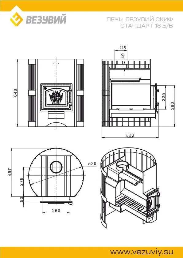 Стальная банная печь ВЕЗУВИЙ Скиф 16 (ДТ-3) Стандарт б/в предназначена для прогрева парного помещения объемом 8-18 кубических метров и поддержания необходимой температуры во время парения. Печь СКИФ оборудована открытой каменкой, закладываемой камнями для бани (приобретаются отдельно). Печь изготовлена из особо прочной котловой стали 09Г2С, рассчитанной на работу при высоких температурах и давлении. Толщина стенок печи 4-6 мм. Топочный тоннель также выполнен из стали марки 09Г2С толщиной 4 мм. Топка оснащена каналом для подачи воздуха на вторичный дожиг дымовых газов. Канал проходит по задней стенке топки снизу вверх и подаёт воздух для горения в верхние отделы топки. Такая конструкция повышает экономичность печи и увеличивает КПД агрегата.