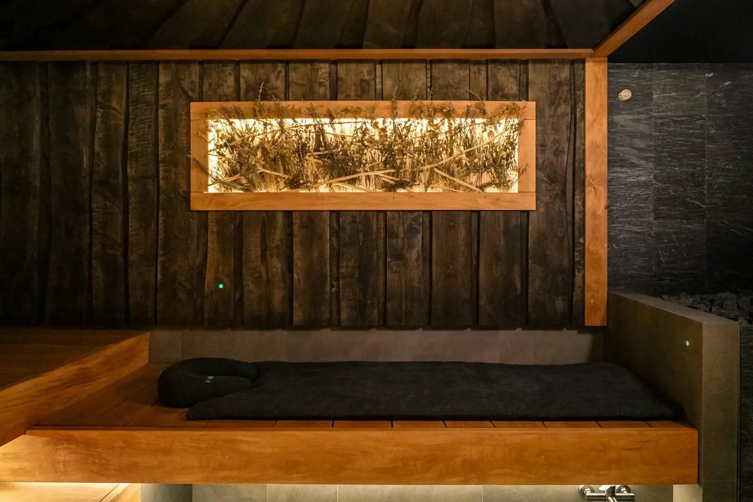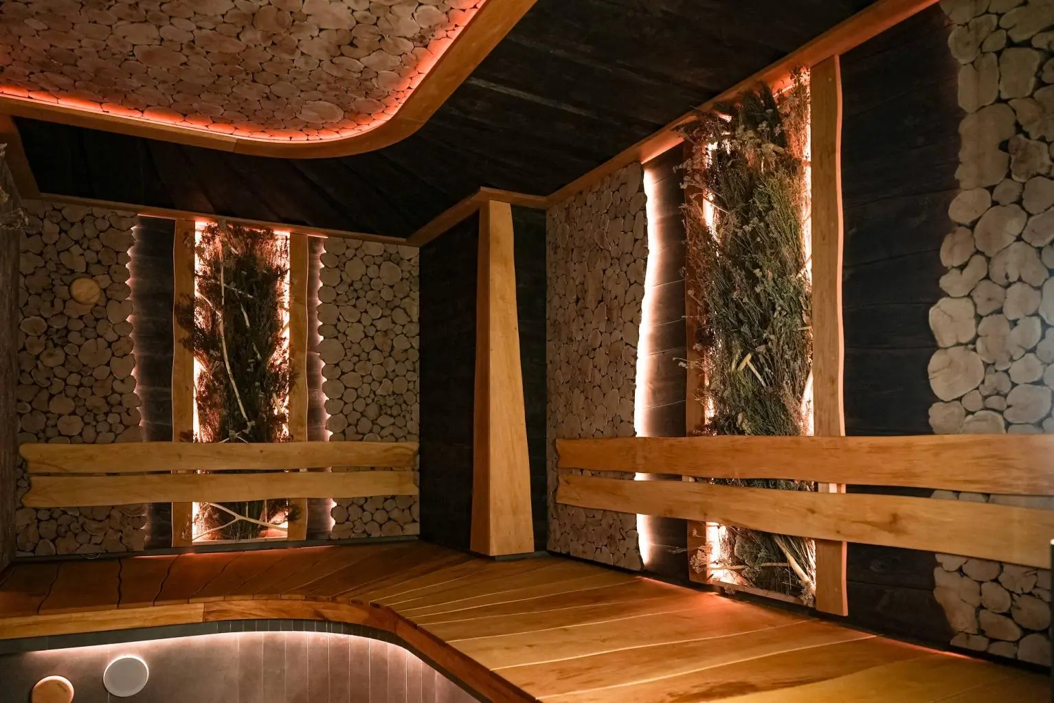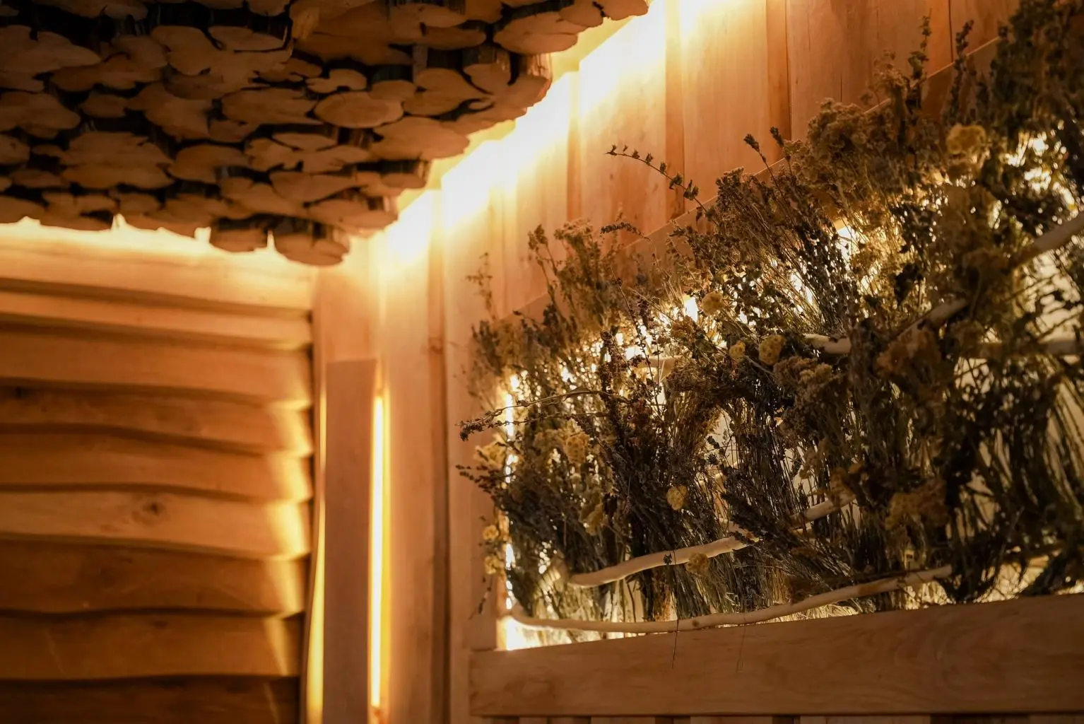 Тёплое дерево, продуманная геометрия, мягкая подсветка и акценты с травами создают самый приятный опыт гостей.